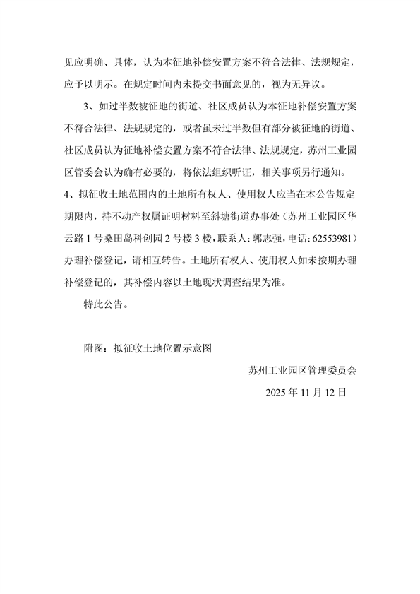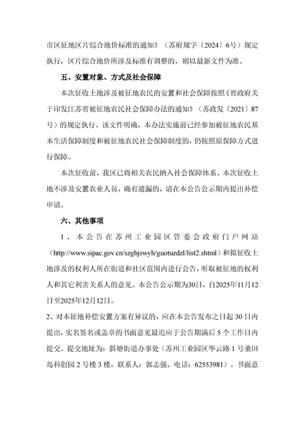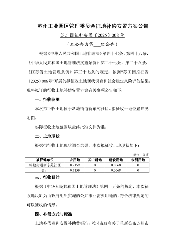 蘇州工業(yè)園區(qū)管理委員會(huì)征地補(bǔ)償安置方案公告(蘇工園征補(bǔ)安置〔2025〕008號(hào))