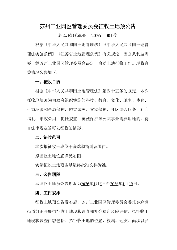 蘇工園預征告〔2026〕001號--征收土地預公告