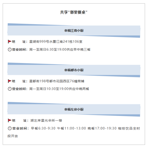 低糖、低油、低鹽“三低”菜肴,鹵菜、咖啡、三明治……都市社區“幸福都市小廚”為你提供“食”惠吃出“幸福滋味”。在這里,你可以偶遇熟悉的鄰居,也可以帶上家人朋友,或是約上舞蹈隊、乒乓球隊隊員,讓幸福的味道在舌尖綻放,讓鄰里溫情在心間流淌。