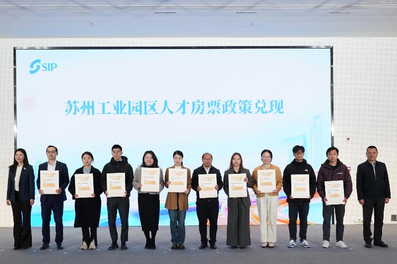 10位成功享受政策的青年人才代表現(xiàn)場領取房票。自今年1月實施以來,該園區(qū)已累計發(fā)放房票138張,補貼金額1738萬元,合同總額4.9億元,圓了青年人才急迫的“園區(qū)安家夢”。