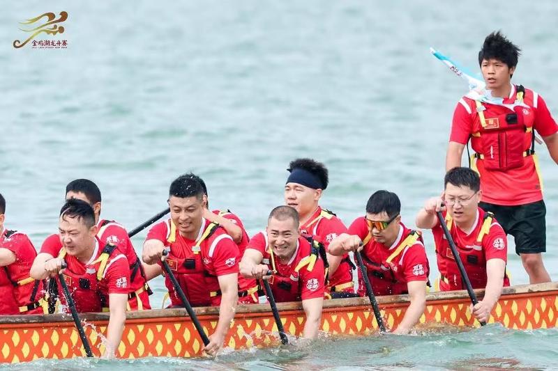 咚!咚!咚!激昂鼓點(diǎn)如心跳,一艘艘龍舟瞬間化作離弦飛箭,選手們緊握船槳,以鼓點(diǎn)為沖鋒號,在碧波蕩漾的金雞湖面劃出一道道澎湃的弧線,整個(gè)金雞湖都跟著沸騰。5月31日上午,2025第十五屆金雞湖端午龍舟賽熱血啟航!