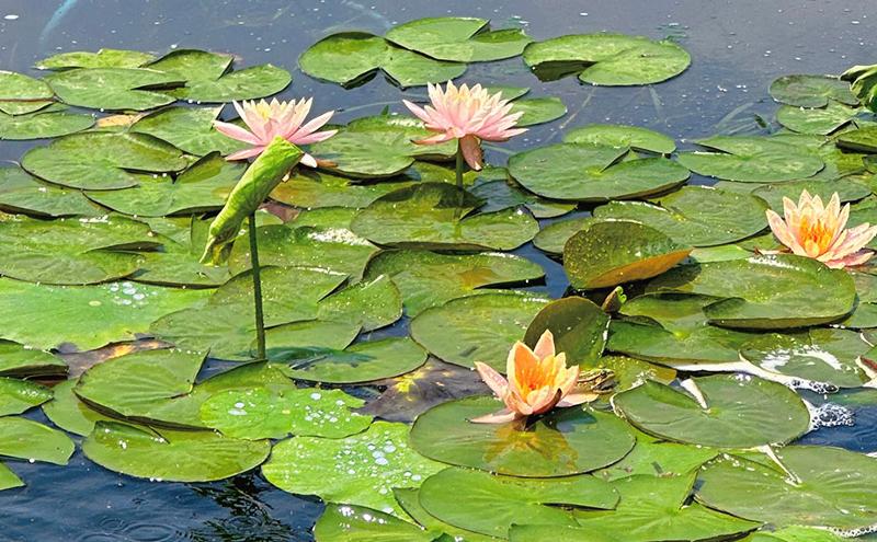 睡蓮綻放的背后,離不開園區對生態環境的精心呵護與不懈努力。近日,環金雞湖步道凈水系統投入使用,成為守護這片水域的“生態衛士”。一排噴頭持續向湖面噴射清水,帶動湖水加速流動。據工作人員介紹,該系統通過促進水體循環,可有效抑制藍藻滋生,為水生生物營造優良棲息環境,讓湖水始終保持澄澈明凈。飛濺的水珠在陽光下折射出晶瑩光芒,氤氳水霧縈繞睡蓮四周,更添幾分仙氣,也讓這片水域煥發出勃勃生機。
