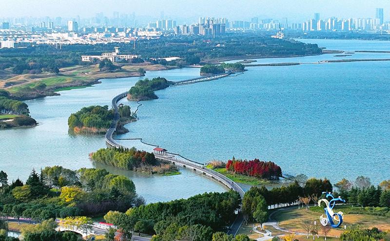 自開發建設以來,園區高度重視生態環境保護,堅持系統治理和重點攻堅,大氣環境質量持續改善,穩定達到國家空氣質量二級標準;立足水環境改善,暢通水系、水岸同治,再現水清岸綠、河暢景美的美麗畫卷;突出水安全保障,建立“雙水源、雙通道”供水模式,供水系統安全韌性持續加強;秉持“源頭防控、系統治理、智慧監管”理念,打造立體化生態環境保護體系,土壤、地下水、聲環境、輻射環境穩步向好;縱深推進生態管控修復、本底調查,生態系統穩定性顯著增強。