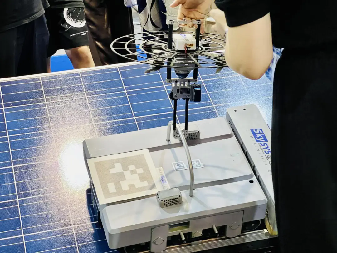 “這是我們最新研發(fā)的光伏面板清潔機(jī)器人,通過(guò)‘搭乘’無(wú)人機(jī)的方式將其投放到光伏面板上進(jìn)行自動(dòng)清潔,結(jié)束后無(wú)人機(jī)還可以復(fù)檢清潔效果。”在星邏智能展臺(tái),公司COO劉宇濤一邊講解,一邊向記者展示清潔機(jī)器人是如何被無(wú)人機(jī)抓取,從而實(shí)現(xiàn)“打飛的”作業(yè)。