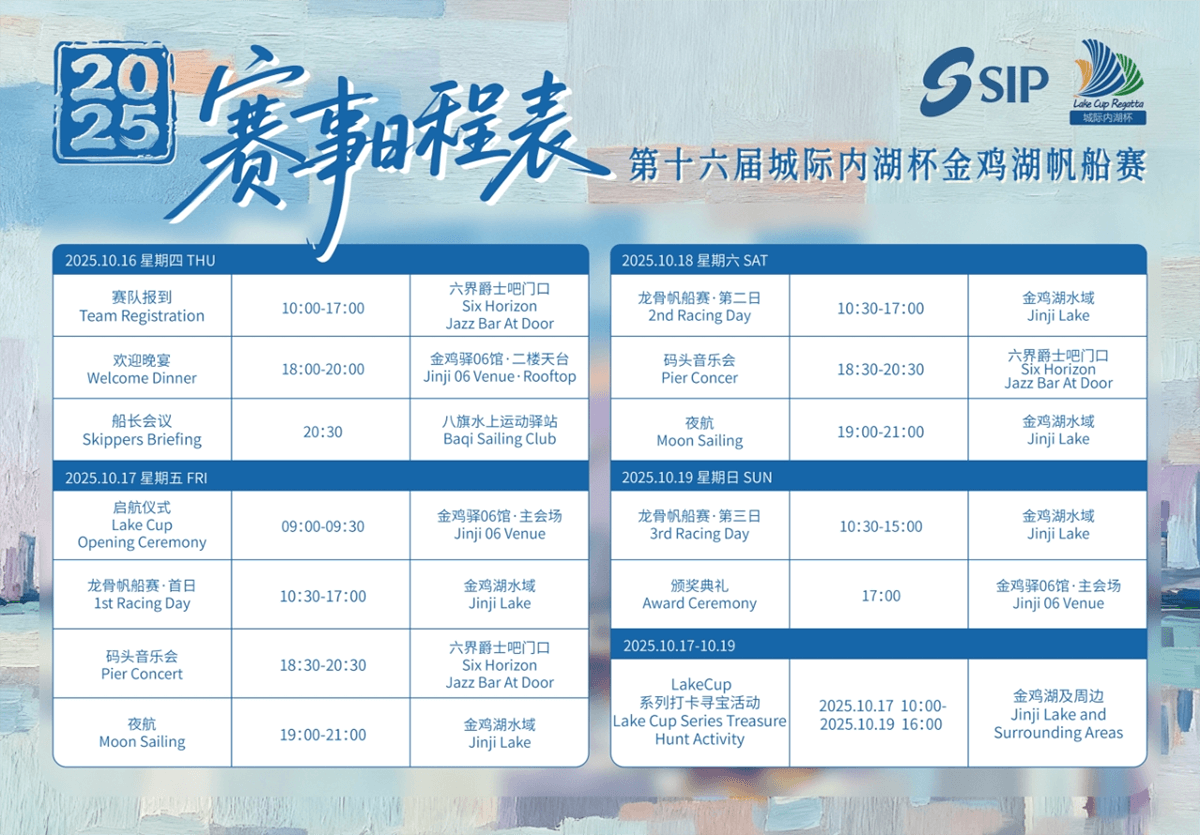 秋風(fēng)送爽,彩帆再啟。2025第十六屆城際內(nèi)湖杯金雞湖帆船賽將于10月16日至19日在蘇州金雞湖正式啟幕。作為蘇州工業(yè)園區(qū)三大品牌體育賽事之一,該賽事已成功舉辦十五屆,本屆賽事以“同帆共進(jìn),聚勢無雙”為主題,聚焦“國際競技之力、水岸文旅之韻、全民樂活之美”三大維度,通過多國選手同臺(tái)競技、專業(yè)與大眾相結(jié)合的賽制設(shè)置,以及體育、文化、旅游元素的深度融合,打造獨(dú)具江南文化特色的城市體育名片。群帆競渡,共逐金雞湖本屆賽事設(shè)置專業(yè)龍骨帆船賽與大眾趣味系列賽兩大板塊。專業(yè)龍骨帆船賽涵蓋J80、DC20及FT7.5三大船型;大眾賽事則以槳板與皮劃艇為主,零基礎(chǔ)選手亦可輕松參與,體驗(yàn)水上運(yùn)動(dòng)的樂趣。賽程設(shè)置豐富多... [詳細(xì)]