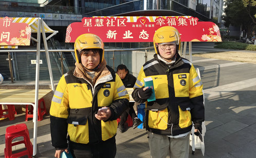首場“暖新便民市集”在星湖天地廣場拉開序幕。這場活動直指居民日常生活中的“關鍵小事”,健康義診、家電維修、便民磨刀、愛心理發,每一項服務都精準對接需求。市集專門設置“暖新關懷”站點,向外賣騎手、快遞小哥等新業態群體遞上暖心禮包,傳遞出“此心安處是吾鄉”的社區溫度。此外,跳蚤市場也盤活了居民家中的閑置物品,既能讓家中閑置物品重獲價值,又能搭建鄰里交流互動的暖心橋梁。現場還有銀行工作人員為居民們送上春聯和福字,普及反電信詐騙和防范非法集資的重要性。這場市集通過最質樸的服務互動,打破了鄰里間的陌生感,為后續更深層次的社區融合奠定了堅實的情感基礎。