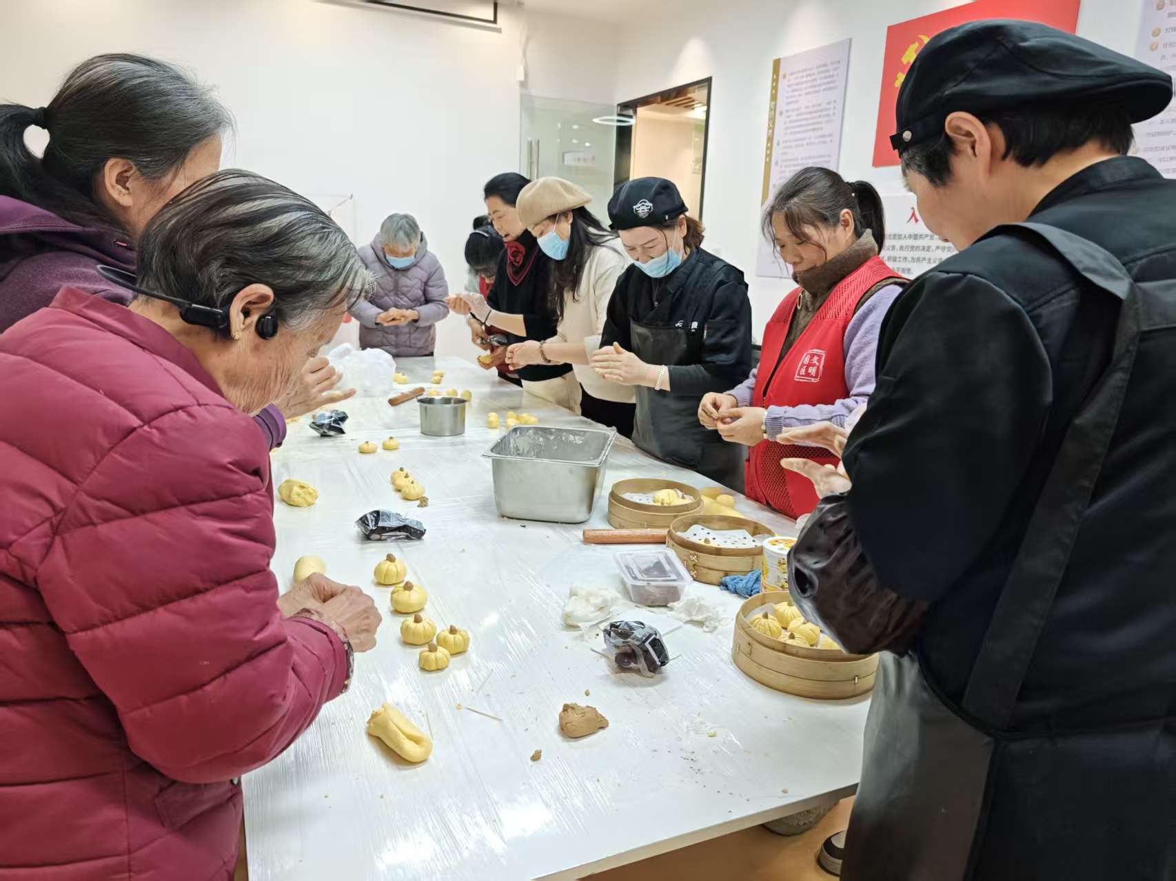 為增加轄區(qū)居民的文化生活,進(jìn)一步增進(jìn)鄰里情感交流,文薈苑社區(qū)開展“以食暖冬,以味連心”美食制作活動,品南瓜之香,享動手之樂。活動伊始,長桌便化身成為溫馨的“社區(qū)廚房”。金燦燦的南瓜泥、雪白的糯米粉、香甜的豆沙餡料一應(yīng)俱全。在美食達(dá)人的帶領(lǐng)下,大家揉面、分團、捏窩、包餡、收口……步驟看似簡單,卻處處是手藝的考驗。大家互相切磋著“不粘手”的秘訣,分享著家鄉(xiāng)的不同做法,在鍋碗瓢盆的輕聲碰撞與陣陣歡聲笑語中,鄰里情誼如同這手中的面團,愈發(fā)緊密而柔韌。