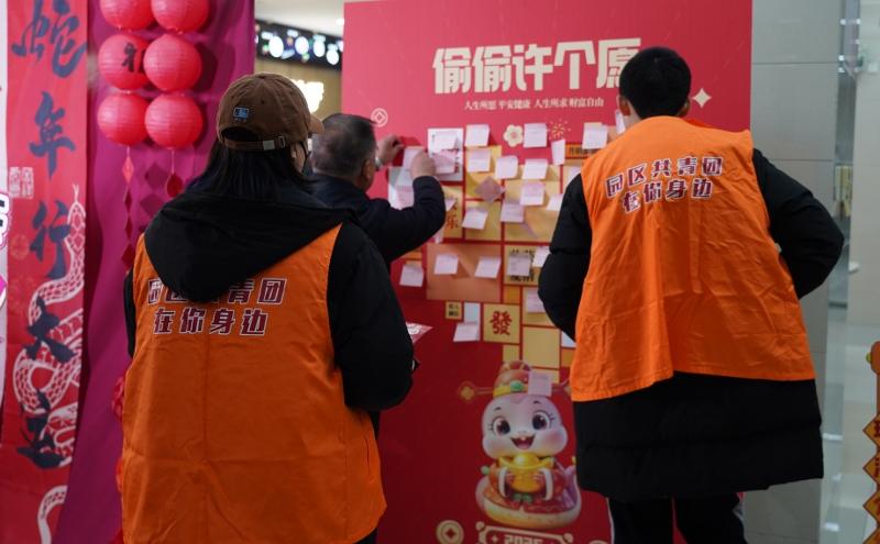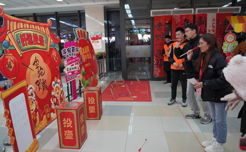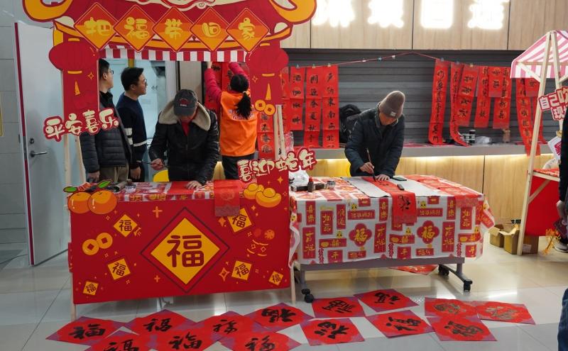 活動(dòng)現(xiàn)場(chǎng),團(tuán)工委還為留蘇青年們準(zhǔn)備了豐富多彩的暖心市集,現(xiàn)場(chǎng)歡聲笑語(yǔ)不斷。糖葫蘆、海棠糕、赤豆圓子……各類(lèi)蘇式美食香氣四溢,投壺、套圈傳統(tǒng)游戲則吸引了眾多青年參與。在文化體驗(yàn)區(qū),青年們?cè)诜沁z老師的指導(dǎo)下,親手拓印新春“福”字,學(xué)習(xí)傳統(tǒng)技藝,感受江南文化的獨(dú)特魅力;新年祈福墻前,大家紛紛拿起筆,在許愿牌上寫(xiě)下對(duì)新一年的美好期許;而新春全家福區(qū)域則為青年們定格下了這難得的團(tuán)聚時(shí)刻,留下珍貴的回憶。員工舒女士表示:“這次活動(dòng)很熱鬧、很暖心,雖然沒(méi)有回家,但在蘇州也能過(guò)一個(gè)有溫度、有年味的春節(jié)。”