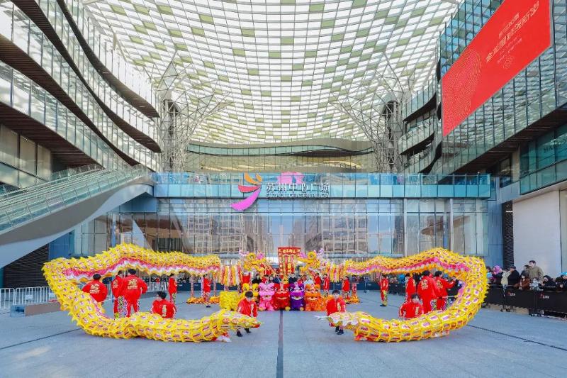 圓融時(shí)代廣場開展“龍騰獅躍游圓融”系列活動(dòng),特邀蘇州市舞龍燈非物質(zhì)文化遺產(chǎn)代表性傳承人蔣達(dá)夫帶領(lǐng)的百花洲龍燈隊(duì),傾情演繹“龍舞盛世,獅躍新春”,這場傳統(tǒng)與現(xiàn)代的激情碰撞,吸引許多市民游客參與現(xiàn)場互動(dòng)。