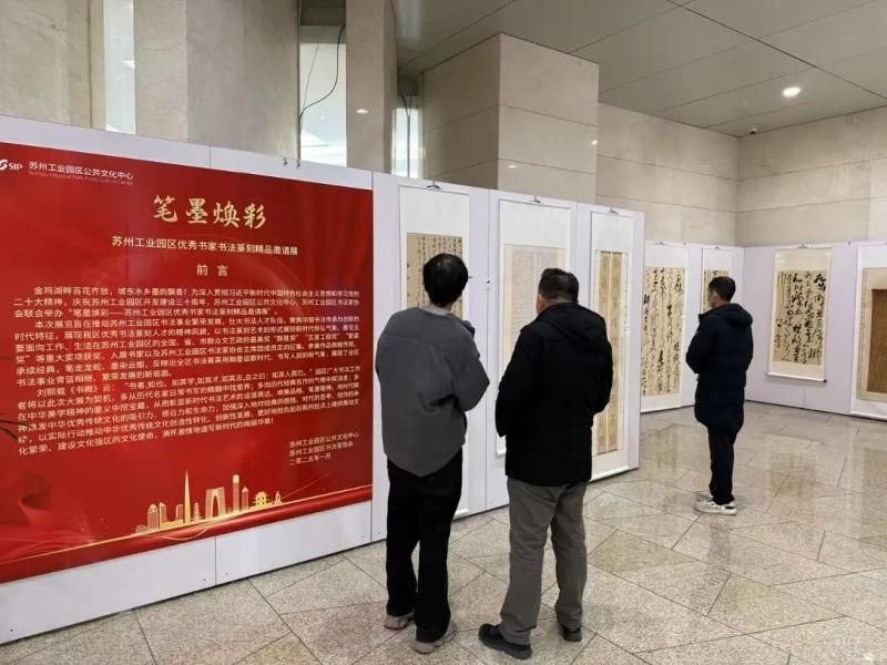 金雞湖畔,由園區(qū)公共文化中心、園區(qū)書法家協(xié)會(huì)聯(lián)合舉辦的筆墨煥彩——蘇州工業(yè)園區(qū)優(yōu)秀書家書法篆刻精品邀請展同樣墨韻飄香。
