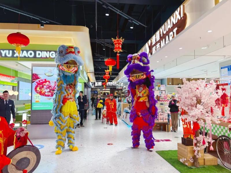 一群憨態(tài)可掬的小獅子在梅花樁上輕盈跳躍,時(shí)而翻滾,時(shí)而嬉戲,還俏皮地從口中“吐”出春聯(lián),為市民游客送上滿滿的新春祝福。這場精彩絕倫的龍獅表演,贏得了現(xiàn)場觀眾的陣陣掌聲,整個(gè)商場洋溢著喜慶。