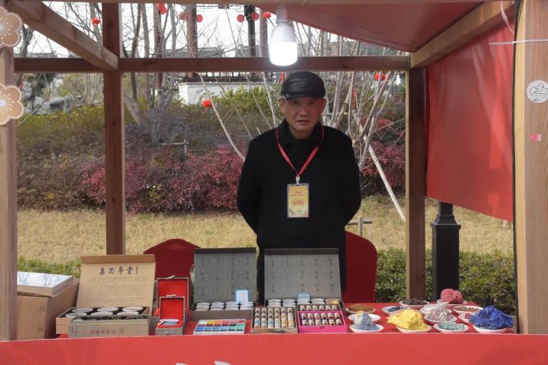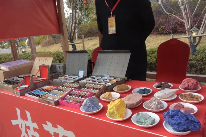“這是藍(lán)銅礦,《千里江山圖》的青綠就是源自這種礦石。這是青金石、朱砂、瑪瑙、貝殼、藤黃、珊瑚、胭脂蟲……有些是礦物原料,有些是動(dòng)物原料,蓼藍(lán)草等則是植物原料。”在“非遺賀新春——古城過大年”全國主會(huì)場活動(dòng)暨蘇州古城過大年系列活動(dòng)的展示現(xiàn)場,姜思序堂國畫顏料制作技藝非遺代表性傳承人張佰林正熱情地向圍觀的市民游客介紹著各色顏料的原材料。