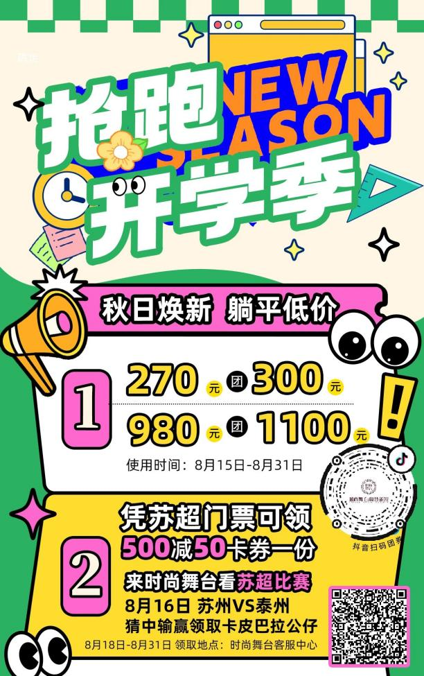 運(yùn)動品牌方面,時尚舞臺奧特萊斯推出“運(yùn)動煥新正當(dāng)時”搶跑開學(xué)季主題促銷,耐克、NewBalance等品牌秋季新品折扣力度空前,同步開展抖音團(tuán)購、競猜贏公仔、錄取祝福、銀行立減等多重優(yōu)惠,輕松購齊開學(xué)裝備。