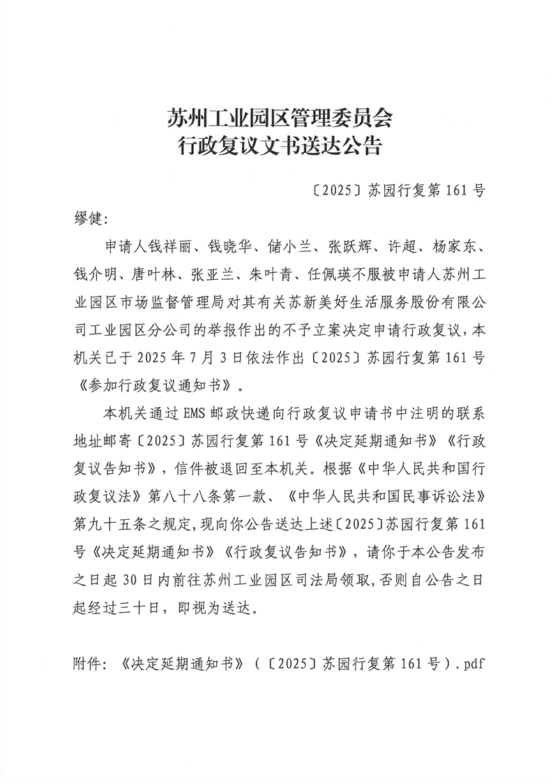 行政復議文書送達公告