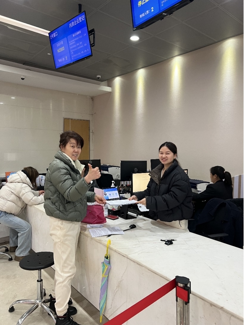 上午,蘇州易思腦健康科技有限公司張女士在星塘大廈順利領(lǐng)取新年首張營業(yè)執(zhí)照。作為一家多股東的外資企業(yè),變更業(yè)務(wù)涉及簽字的人員較多。為了避免企業(yè)往返跑腿,提高辦理效率,工作人員全程細(xì)心指導(dǎo),提醒經(jīng)辦人提前準(zhǔn)備簽字頁等;針對材料中存在的細(xì)微瑕疵,協(xié)助企業(yè)現(xiàn)場修改完善,實(shí)現(xiàn)高效辦結(jié)?!肮ぷ魅藛T服務(wù)熱情周到、辦事高效細(xì)致,讓企業(yè)辦事更省心、更舒心?!睆埮繉Υ翱诜?wù)由衷點(diǎn)贊。