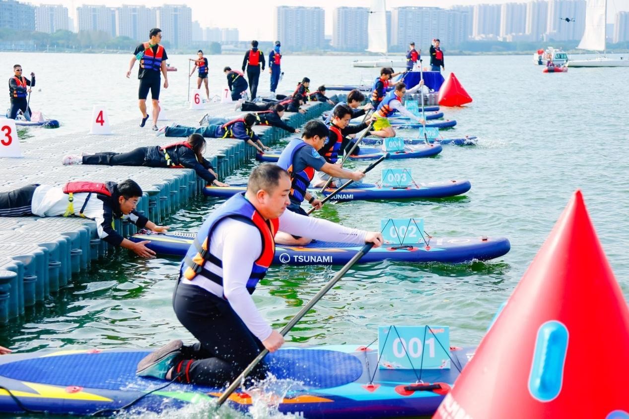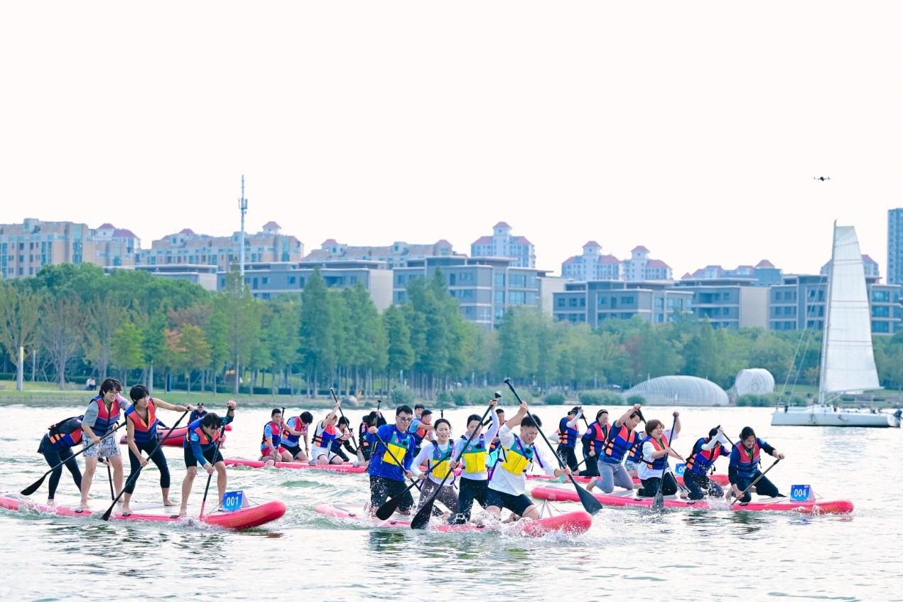 “今天天氣條件很好,湖面平靜,非常適合槳板運(yùn)動(dòng)。”來(lái)自西交利物浦大學(xué)代表隊(duì)的隊(duì)員表示,隊(duì)伍平時(shí)會(huì)開(kāi)展平衡性訓(xùn)練、直線劃行等練習(xí),希望能在這場(chǎng)比賽中發(fā)揮出最好水平。值得一提的是,聚焦科教創(chuàng)新區(qū)特色,來(lái)自園區(qū)各科研院所的十余位領(lǐng)軍人才組成代表隊(duì),從實(shí)驗(yàn)室走向水域賽場(chǎng),展現(xiàn)出科研工作者別樣的活力與風(fēng)采。“雖然剛開(kāi)始接觸這項(xiàng)運(yùn)動(dòng),但槳板運(yùn)動(dòng)帶來(lái)的與自然融合的體驗(yàn)讓人感到非常舒適,期待以賽會(huì)友,在競(jìng)逐中促進(jìn)交流學(xué)習(xí)。”園區(qū)科研院所領(lǐng)軍人才代表隊(duì)隊(duì)員程功弼說(shuō)道。