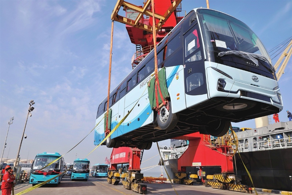 發(fā)車儀式現(xiàn)場(chǎng),一輛輛海格客車整齊停放,車頭紅花格外吸睛。隨著禮花綻放,車隊(duì)緩緩駛出廠區(qū),開(kāi)往港口,踏上前往阿爾及利亞的萬(wàn)里征程?!按舜纬隹诘目蛙嚢?米、11米新V系客車及12米全承載公交車等多個(gè)車型,是阿爾及利亞‘萬(wàn)輛公交車更新計(jì)劃’的重要組成部分?!碧K州金龍海外銷售總經(jīng)理姜海峰介紹,蘇州金龍憑借產(chǎn)品性能和品牌影響力,從激烈的國(guó)際競(jìng)爭(zhēng)中脫穎而出,成功獲得這次3000輛采購(gòu)訂單,實(shí)現(xiàn)了企業(yè)在開(kāi)拓國(guó)際市場(chǎng)上的又一次突破。