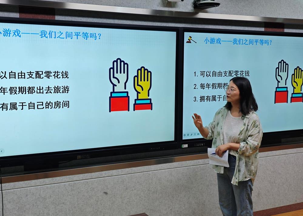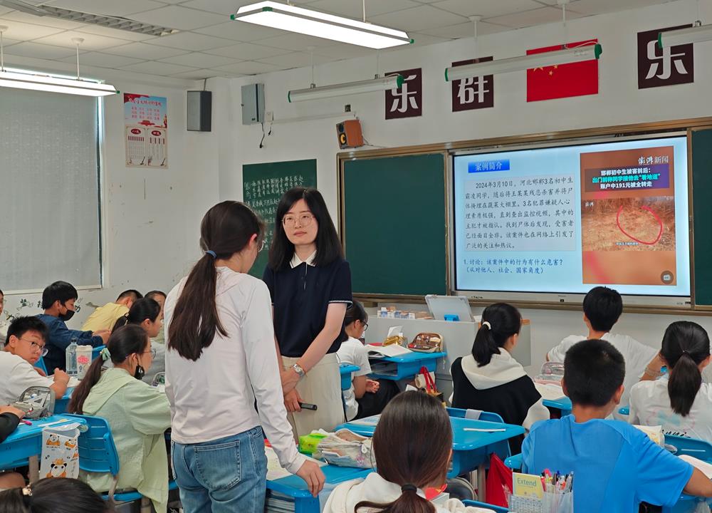 星海實(shí)驗(yàn)初級(jí)中學(xué)的陳燕秋老師以“嚴(yán)于律己:守住行為邊界做自律好少年”為總議題展開(kāi),通過(guò)設(shè)置“年齡小”=“免罰牌”?“小錯(cuò)”釀成“大罪”?“自縛”還是“自由”?等三個(gè)問(wèn)題,帶領(lǐng)學(xué)生探尋法律責(zé)任的真相,認(rèn)清不良行為的演變陷阱,體會(huì)自律帶來(lái)真正的自由。